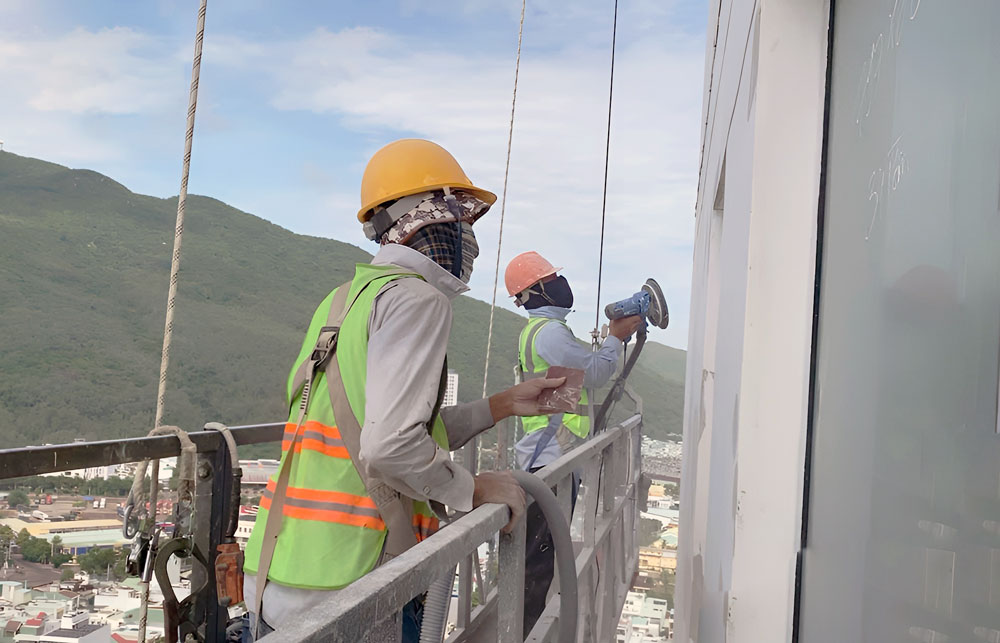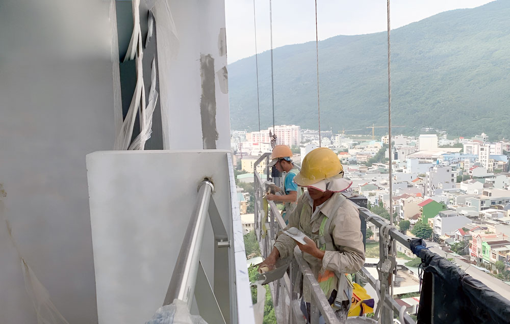Tháp Flamenco và tháp Tropical - Thi công sơn nước mặt ngoài