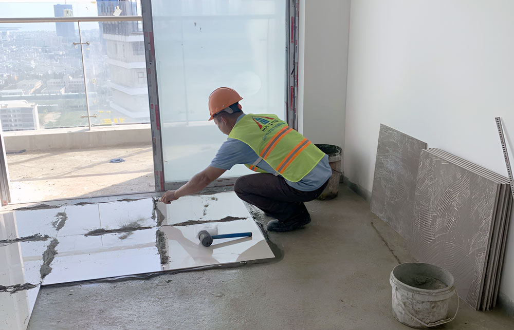Tháp Tropical - Thi công lát gạch căn hộ tầng 34