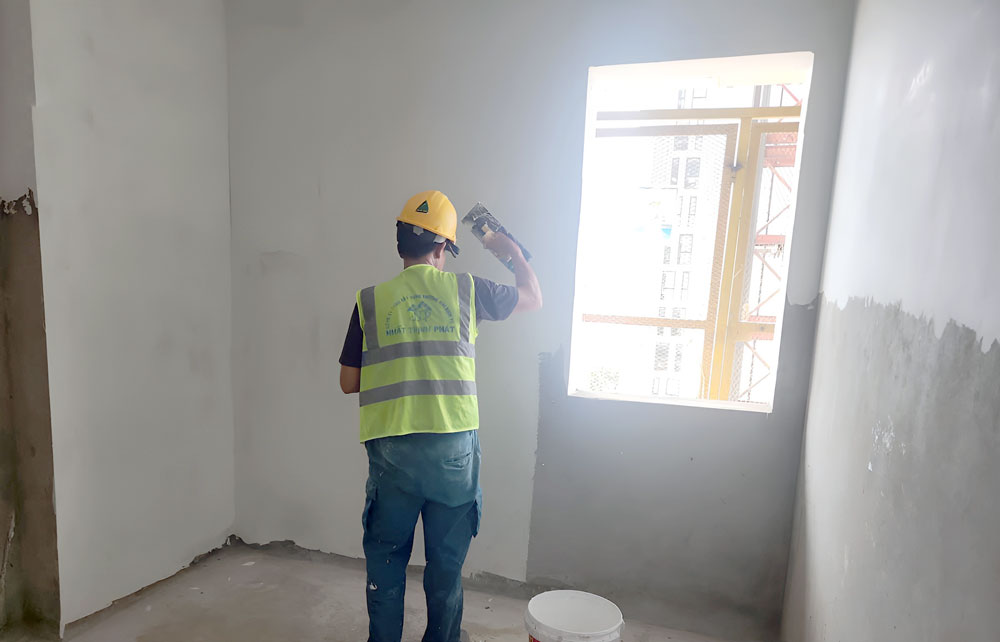 Tháp Flamenco - Thi công bả ma tít tầng 17